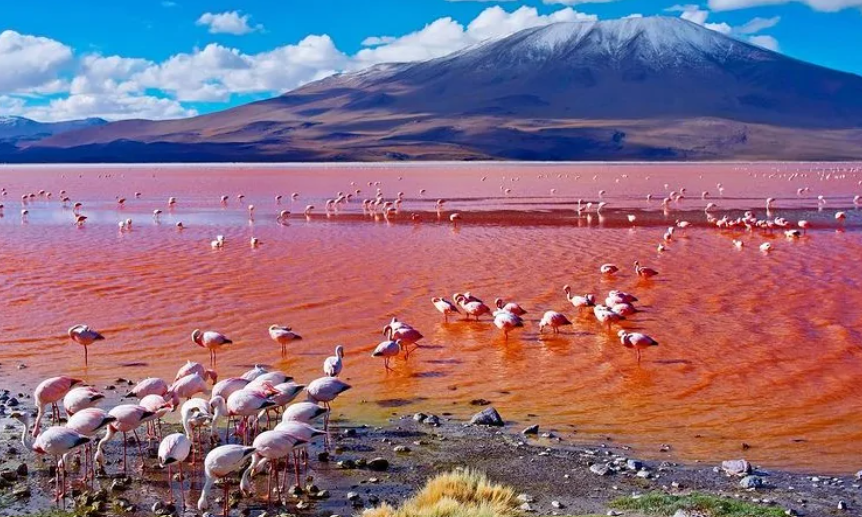 • Spirulina algae thrive and turn the water a red-orange hue. This algae can survive total dehydration and revival.